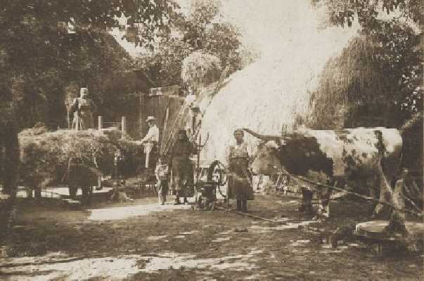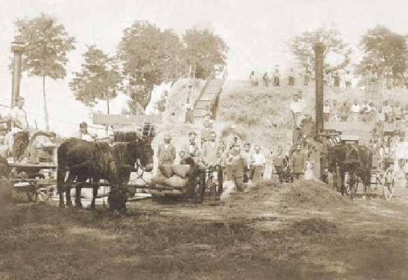 Kende 094, Járgányos cséplés, Thresting, Dresche, Dunakanyar Dunabogdány, 1923 Cséplés a Fábián tanyán Fotó:Tóth Ernõ gyûjtése