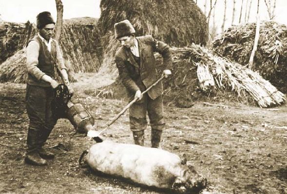 Kende 004, Disznótor, Körösök völgye, Békés Belencéres 1950, Békési István tanyáján Közreadja: Csabai Kolbászklub Egyesület 5600 Békéscsaba Szt. István tér 9. Tel:66/445-002
