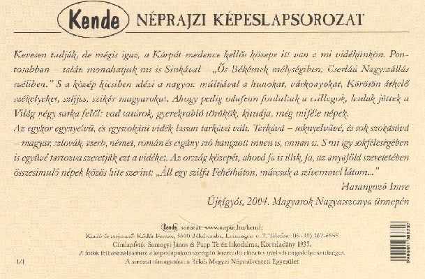 Kende 008, Román család, Közép-Békés, Kétegyháza 1940 Közreadja: Román Kisebbségi Önkormányzat 5600 Békéscsaba Szabadság tér 11-17.